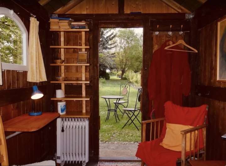 Holzschuppen, der derzeit für die Unterbringung der