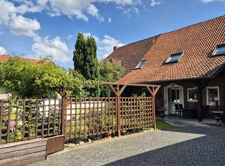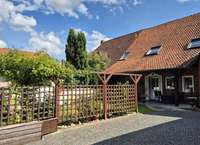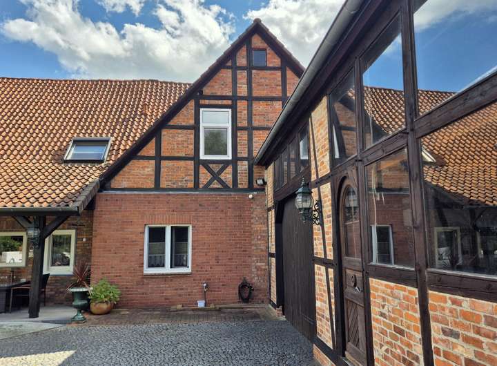 Dieses Fachwerkhaus gehört zu einem ehemaligen Hof mit Nebengelassen, welche um die Jahrtausendwende zu Wohnraum um- und ausgebaut worden sind. Daraus entstand unter anderem dieses verträumte Fachwerkhaus mit angrenzender Scheune inklusive Werkstatt und Ladengeschäft.