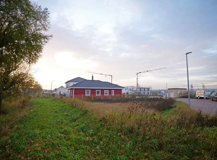 Das Grundstück befindet sich in einem vollständig erschlossenen Neubaugebiet in einer familienfreundlichen Wohnlage mit überwiegend freistehenden Einfamilienhäusern und Doppelhäusern. Die Umgebung ist geprägt von viel Grün und angrenzenden Freiflächen. Durch die optimale Ausrichtung können künftige Bewohner ganztägig von einer angenehmen Licht- und Sonnensituation profitieren.