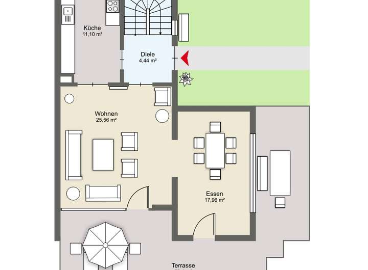 Das Haus befindet sich in einer bevorzugten, ruhigen Wohngegend auf einem ca. 393 m² großem Grundstück mit Süd/Ost - Ausrichtung, Garten und Terrasse.