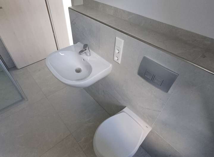 -Wohnung ist komplett mit großformatigen Fliesen gefliest