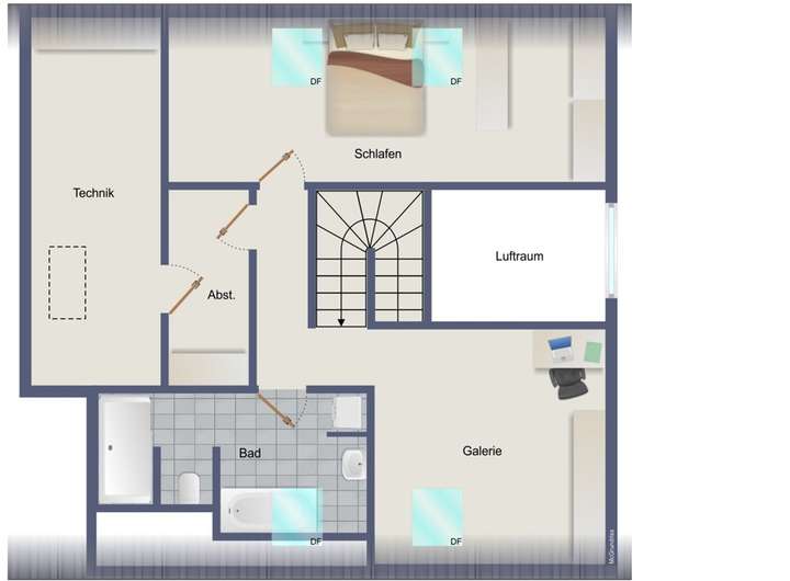 Besondere Highlights dieser Wohnung sind die dimmbaren Einbauspots an der Decke, das Echtholzparkett in lackierter Ausführung und moderne Einbauschränke, die einen optimalen Nutzen hinsichtlich Stauraum in der oberen Etage bieten.
