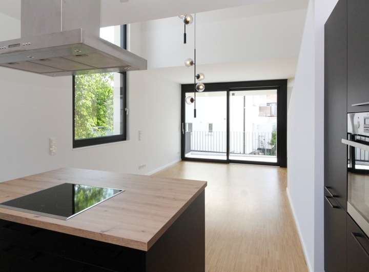 Mit einer Wohnfläche von ca. 119 m² und insgesamt vier Zimmern bietet sie großzügigen Raum für individuelle Gestaltungsmöglichkeiten. Die Wohnung verfügt über eine effiziente Wärmepumpe und Fußbodenheizung in allen Räumen für angenehme Wärme. Die Schallschutzfenster mit dreifach Verglasung und schwarzen Holzrahmen samt elektrisch betriebener Stoff-Sonnenschutzelemente sorgen für eine optimale Lichtdurchflutung und Privatsphäre. Der offene Wohn-Essbereich mit Zugang zur Loggia und großen Fensterfronten schafft eine lichtdurchflutete Atmosphäre und lädt zum Verweilen ein. Die hochwertige Einbauküche mit Kochinsel und allen Elektrogeräten inklusive ist ein Highlight. Das Zimmer im unteren Bereich kann als Gäste- oder Kinderzimmer dienen, während die offene Galerie im Obergeschoss als inspirierender Arbeitsplatz genutzt werden kann. Ein zusätzliches Schlafzimmer im Obergeschoss bietet Flexibilität für individuelle Bedürfnisse.