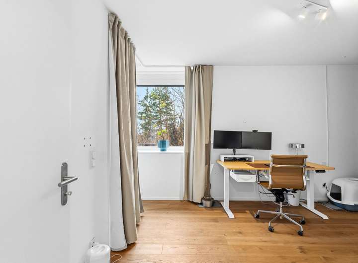 Die im Baujahr 2017 entstandene Wohnung verfügt über eine dezentrale Wohnraumbelüftung, Fußbodenheizung und dreifachverglaste Fenster.
