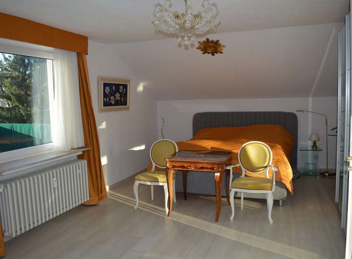 Die beiden Zimmer im Obergeschoss können auch als Kinderzimmer oder als Homeoffice genutzt werden. Eines davon verfügt über einen großen, sonnigen Balkon.