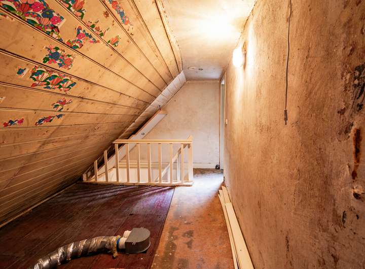Das Dachgeschoss befindet sich im entkernten Zustand und bietet die seltene Gelegenheit, individuelle Vorstellungen zu verwirklichen – ob zusätzlicher Wohnraum, Arbeitsbereich oder Rückzugsort. Die neue Heizungsanlage ist hier bereits installiert, ebenso sind vorbereitende Sanierungsmaßnahmen erfolgt. Mit kreativem Gespür lässt sich hier zusätzlicher Wohnwert schaffen und das Haus sinnvoll erweitern.