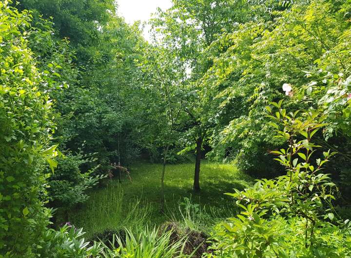 Sträucher, Bäume, Wiese: Grün – wohin das Auge schaut.