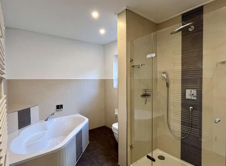 Zur weiteren Ausstattung zählen elektrische Rollläden, dreifach verglaste Fenster, Parkettböden, Glasfaser- und Satellitenanschluss sowie eine moderne Haustür in Holz-Aluminium-Kombination. Ein Tiefgaragen-Einzelstellplatz rundet dieses attraktive Mietangebot ab.