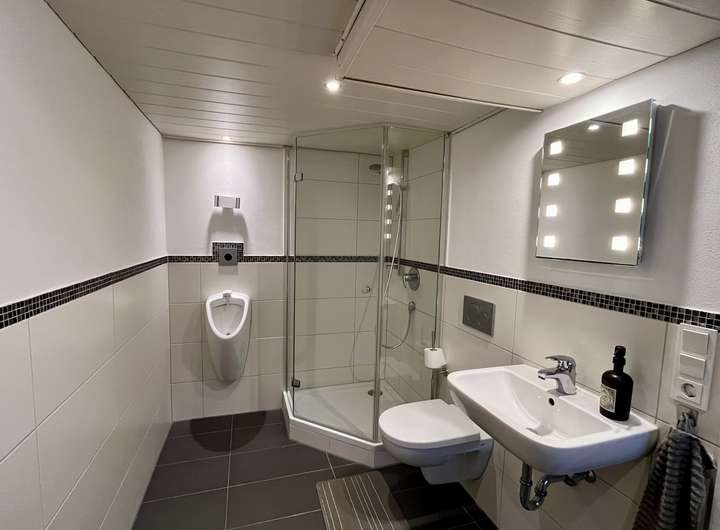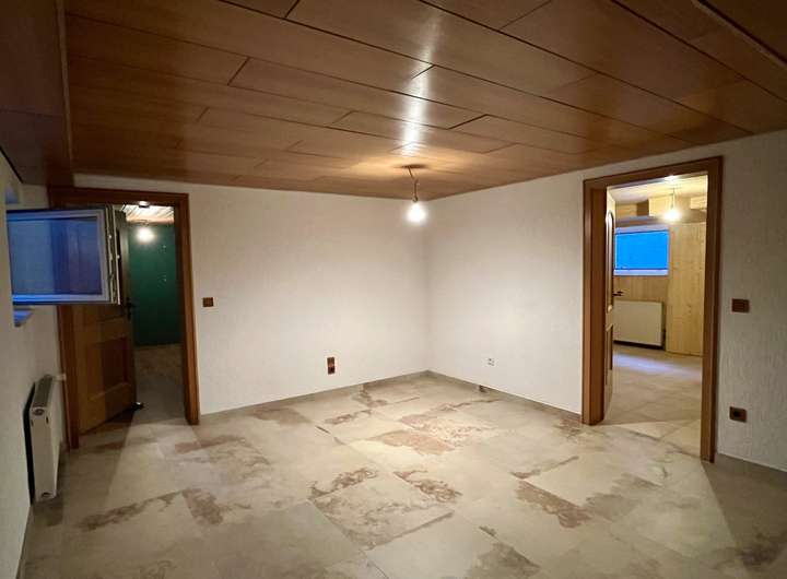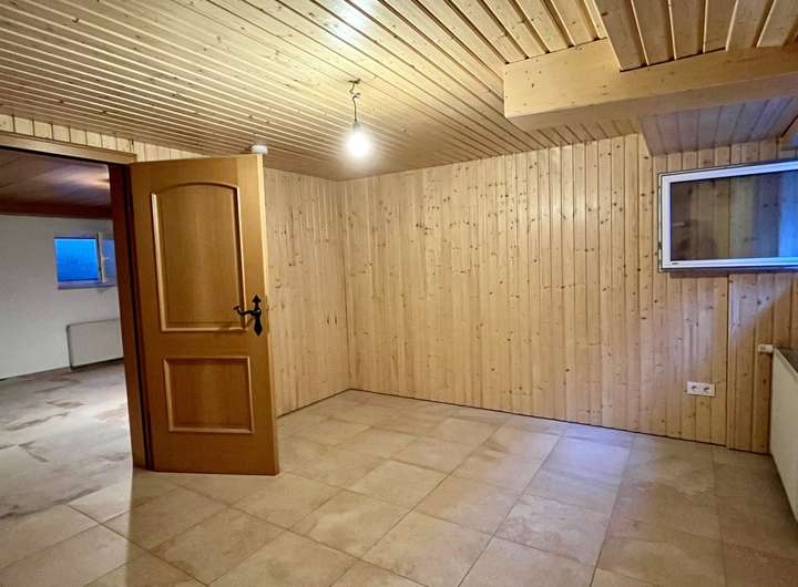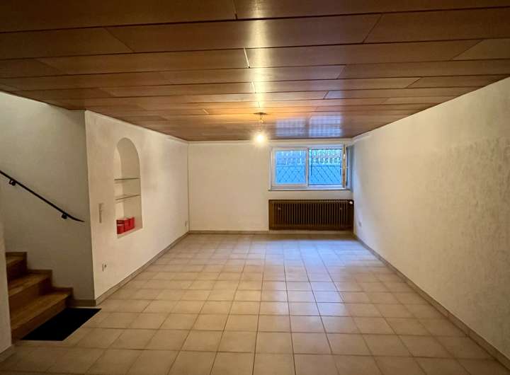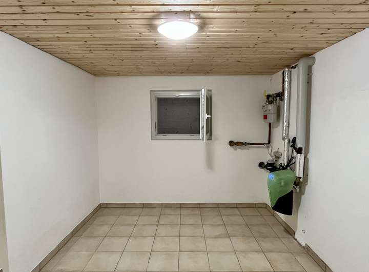 Das Untergeschoss, das vollständig ausgebaut, mit einer gemütlichen Holzdecke vertäfelt sowie durchgängig gefliest ist, bietet mehrere Kellerräume, darunter zwei Hobbyräume, Lagerräume sowie ein gemütliches Gästezimmer mit angeschlossenem modernen Duschbad. Hier befinden sich zudem der Waschmaschinenanschluss und ausreichend Platz für Stauraum oder Freizeitaktivitäten.