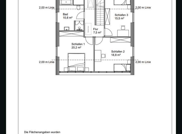 Im Obergeschoss befinden sich drei großzügige Schlafzimmer, sowie ein Bad mit Dusche und Badewanne.
