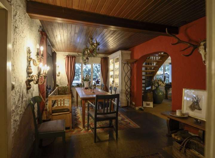 Weitere Innenräume wie ein stimmungsvoller Weinkeller, ein Jagdzimmer und funktionale Nebenräume erweitern das Angebot und ermöglichen vielseitige Nutzung.