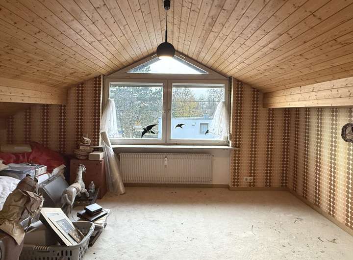 - als Zimmer ausgebauter Raum mit großem Giebelfenster