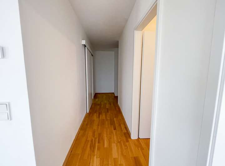 Der großzügige Wohn- und Essbereich wird durch die offen integrierte Einbauküche (zzgl. 70 €/Monat) perfekt ergänzt und vermittelt ein modernes, freies Wohngefühl. Dreifach verglaste, bodentiefe Fenster, elektrische Rollläden, Fußbodenheizung sowie edles Eichenparkett sorgen für höchsten Wohnkomfort. Drei helle Schlafzimmer und ein praktischer Hauswirtschaftsraum runden das Raumangebot ab.