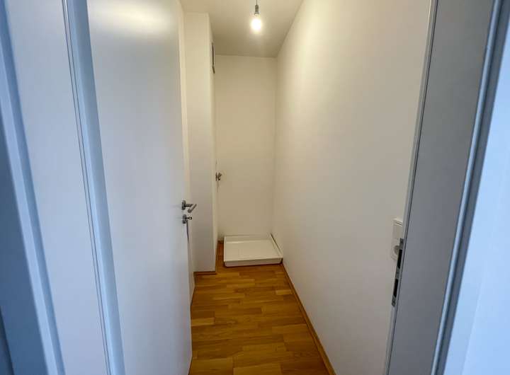 Beim Betreten empfängt Sie ein einladender Dielenbereich mit Platz für eine Garderobe. Von hier aus gelangen Sie in das helle, barrierefreie Masterbad, das mit hochwertigen Armaturen und einem zeitlosen Design überzeugt, sowie in das zusätzliche Gäste-WC mit Dusche.
