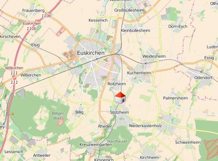 Trotz der Nähe zur Natur ist das Euskirchener Zentrum nur 1,5 km entfernt. Direkt am Wohngebiet hält ein Bus und wenige hundert Meter weiter befindet sich der Stotzheimer Bahnhof. Mit dem Auto sind Sie in 10 Minuten auf der A1. Arzt, Apotheke, Kindergarten, Spielplatz, Grundschule und Geschäfte für den täglichen Bedarf befinden sich im Ort.