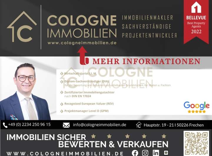 Menschen & Immobilien - Wir beweisen, dass Immobilienvermarktung durch uns anders geht! COLOGNE IMMOBILIEN (Sachverständigenbüro u. Immobilienmakler) wurde im Jahre 2023 und 2024 zum BELLEVUE BEST PROPERTY AGENTS ausgezeichnet. Damit gehören wir zu den besten Immobilienunternehmen weltweit, empfohlen von BELLEVUE - Europas größtem Immobilien-Magazin. Auch die Zeitschrift FOCUS zeichnete uns 2023, 2024 und 2025 zum TOP 1.000-Maklerunternehmen-Deutschlands aus!