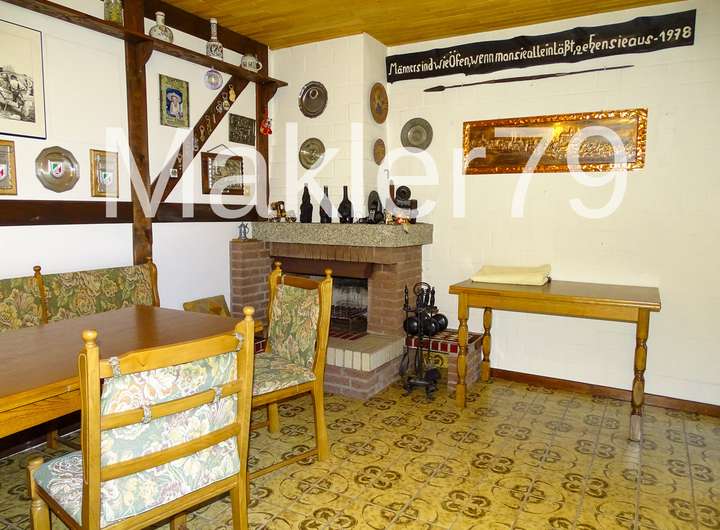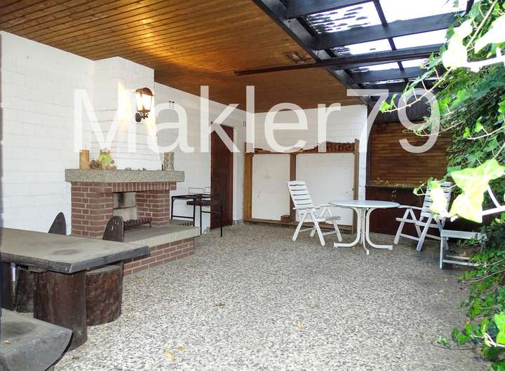 Die Doppelhaushälfte verfügt über einen Anbau, der aktuell als Lager genutzt wird, sowie eine Garage mit einem angrenzenden Partyraum, ausgestattet mit Kamin und WC. Ergänzt wird die Immobilie durch einen überdachten Freisitz und ein separates Nebengebäude, das als Hobbyraum oder Werkstatt genutzt werden kann.
