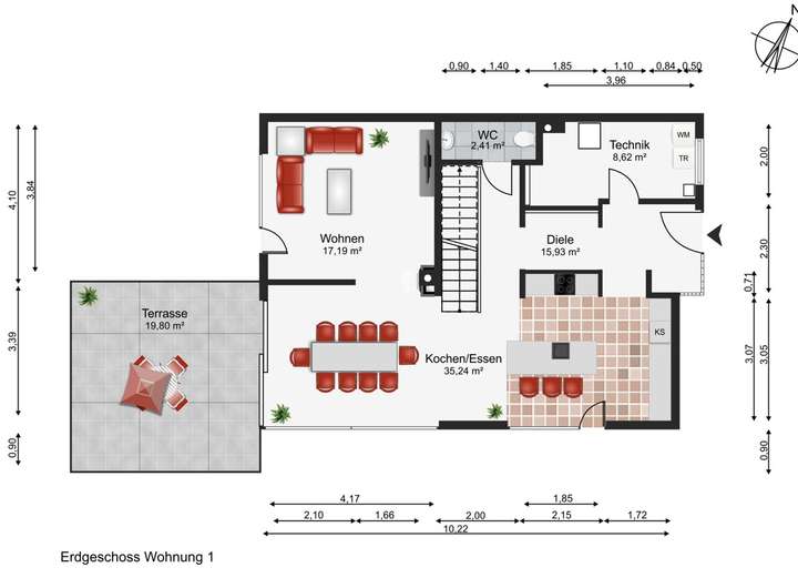 - jede Wohneinheit verfügt über eine separate Aluminuim-Haustür mit Sicherheitsverriegelung,
