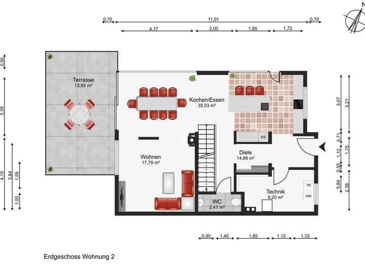- kontrollierte Wohnraumlüftungsanlage (KWL) mit Wärmerückgewinnung