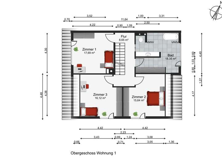 - hochwertige Aluminiumfenster mit dreifach Wärmeschutzverglasung gemäß GEG,