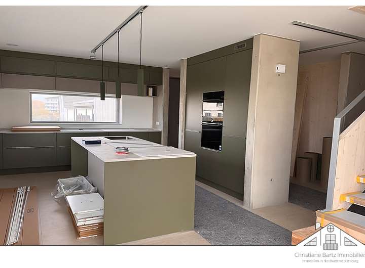 - die hochwertige Einbauküche mit Induktionskochfeld und Einbauherd in Komforthöhe mit Pyrolyse und indirekter Beleuchtung,