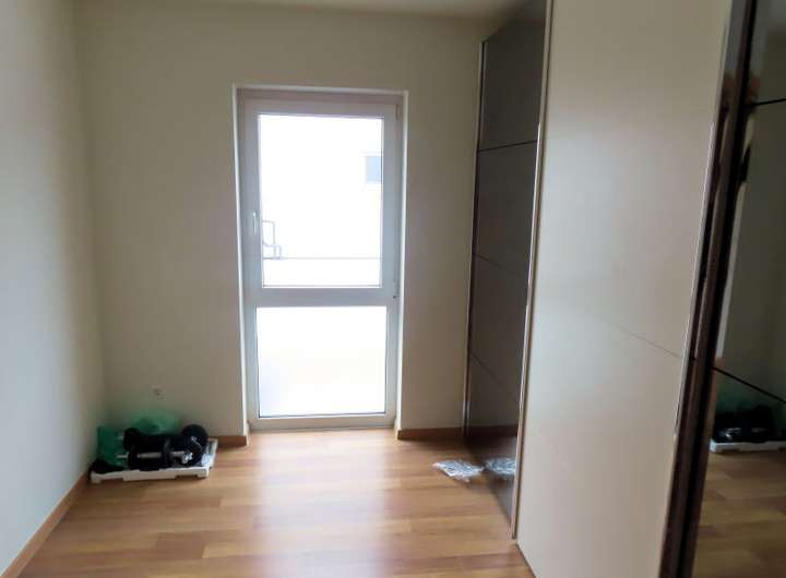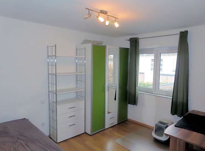 Wände, Schräge und Decke: Glattputz, gestrichen, bodentiefes Fensterelement, Verdunkelungsrollo