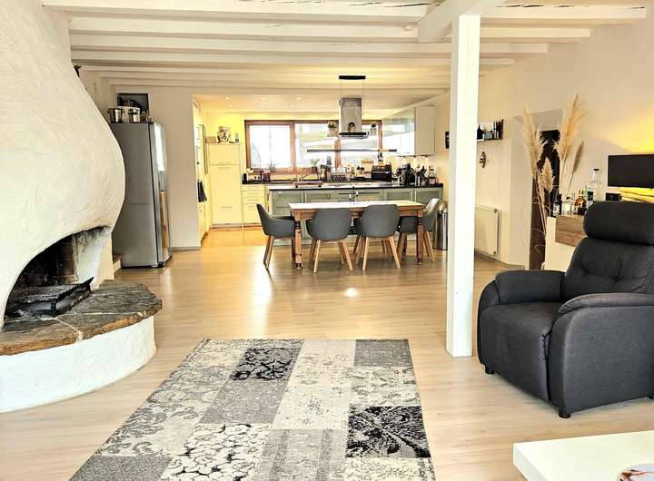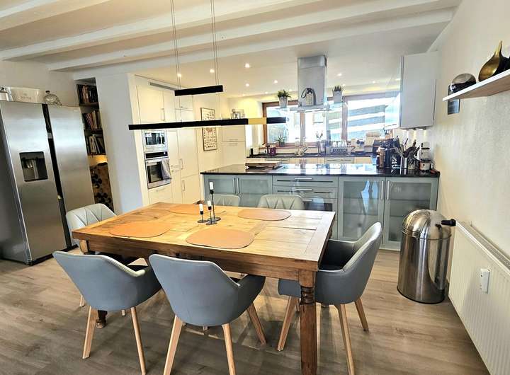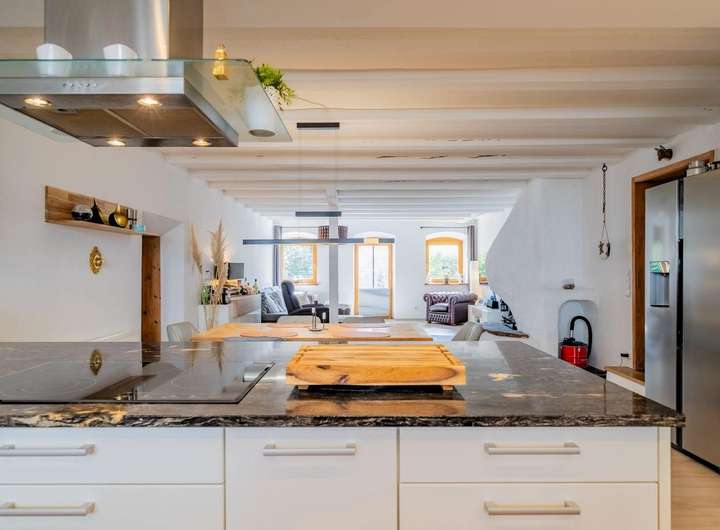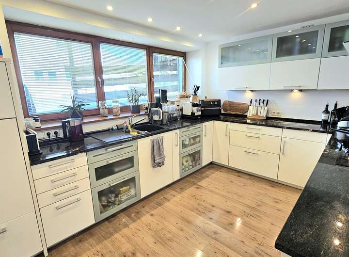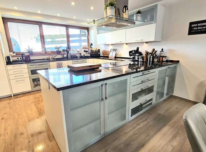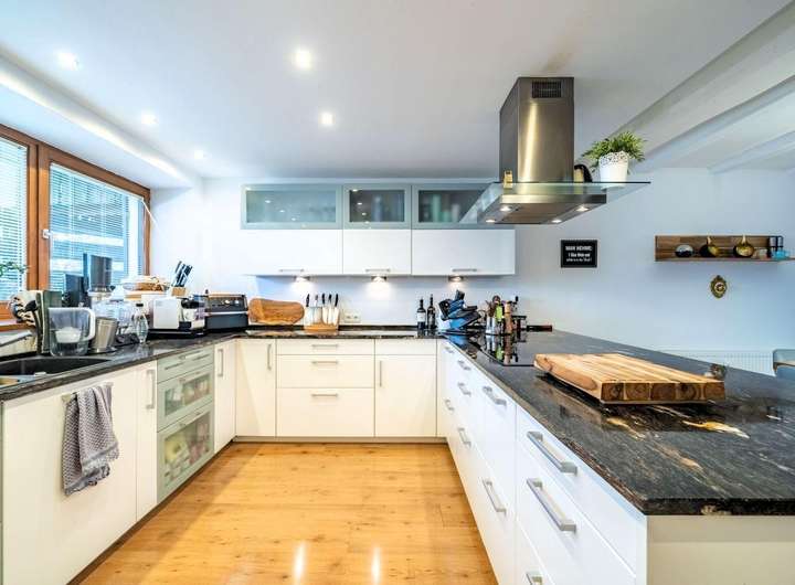 Der offen gestaltete Wohn- und Essbereich mit rund 65 m² beeindruckt nicht nur durch Großzügigkeit, sondern durch stimmige Details: eine exklusive Beckermann-Küche mit edler Granitplatte und hochwertigen Einbaugeräten im Wert von über € 30.000,--. Ein stilvoller Kamin geschaffen für entspannte Abende mit Freunden oder ruhige Stunden.