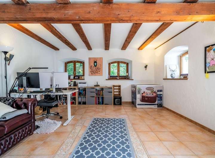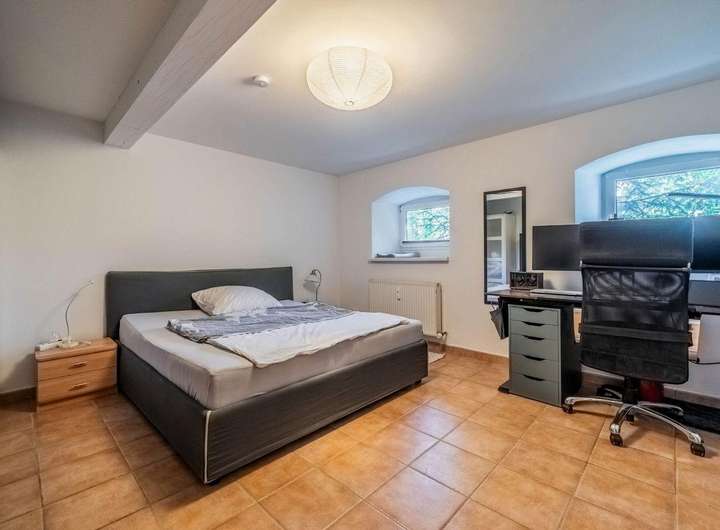 Drei ruhige Schlafzimmer schaffen Raum für Rückzug und Erholung. Ein hochwertig ausgestattetes 17 m² großes Badezimmer, ein Waschraum, ein Gäste-WC, eine separate Bauernstube und Sauna sowie drei Dielen unterstreichen das durchdachte Wohnkonzept. Ob Homeoffice-Oase oder Mehrgenerationenlösung, die Aufteilung lässt keine Wünsche offen.