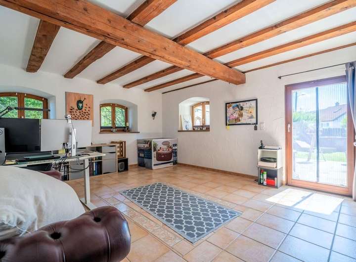 Diese Wohnung vereint ländlichen Charme mit hochwertigem, zeitgemäßem Wohnkomfort ideal für Familien, anspruchsvolle Paare oder "Wohnen & Arbeiten" unter einem Dach. Diese außergewöhnliche Gartenwohnung bietet auf ca. 260 m² Wohn- Nutzfläche und einer Ebene eine exklusive Ausstattung, die höchsten Ansprüchen gerecht wird