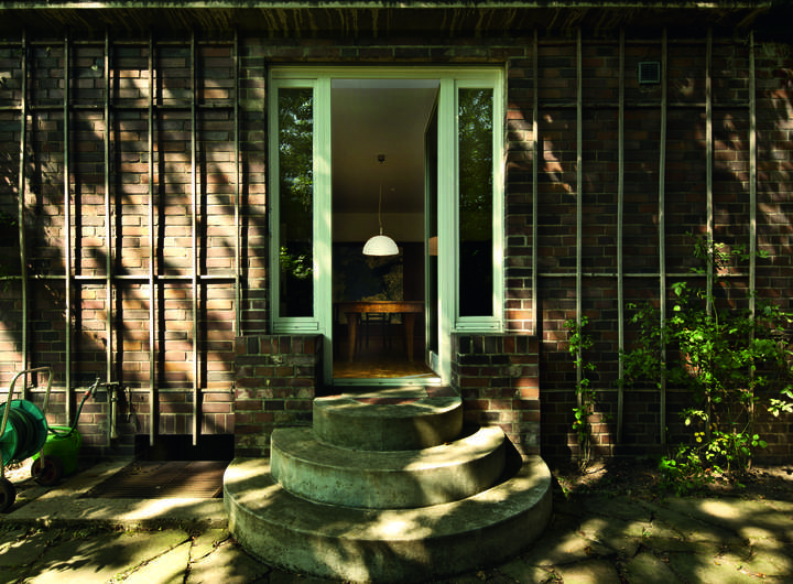 • Außenverkleidung in rotem Backstein.