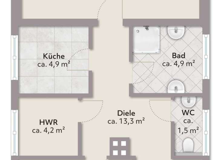 - Zwei Terrassen (Westterrasse sowie tieferliegende Terrasse)