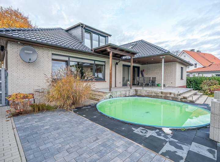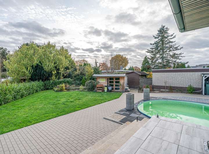 Sie suchen ein sehr gepflegtes, modernes und saniertes Einfamilienhaus in gut bürgerlicher Lage mit wunderschönem Garten, kleinem eingelassenen Pool und Garage?