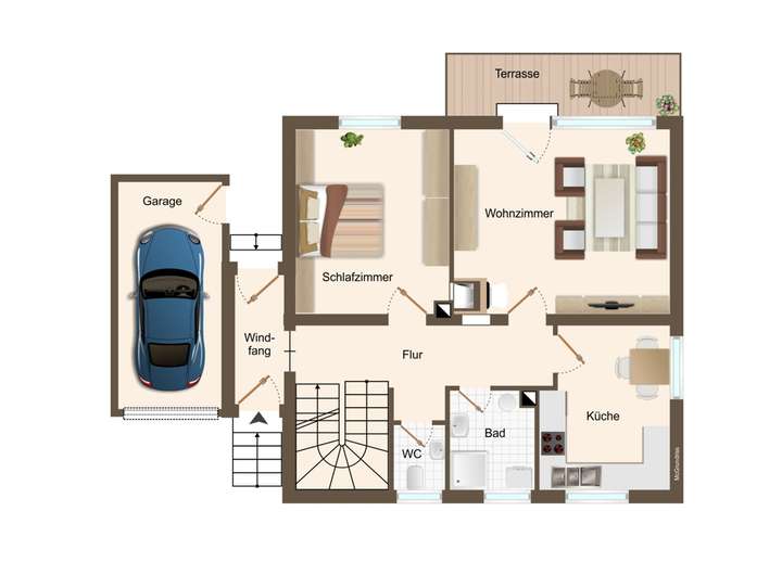 - weiteres Zimmer mit der Möglichkeit eine Küche zu installieren