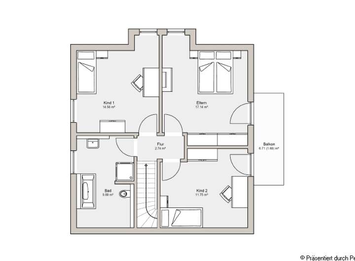 Im Dachgeschoss versprechen zwei Kinderzimmer und ein Elternschlafzimmer mit dem gemeinsamen Familienbad Ruhe und Entspannung pur. Mit dem Familienhaus Esprit liegen Sie immer richtig!
