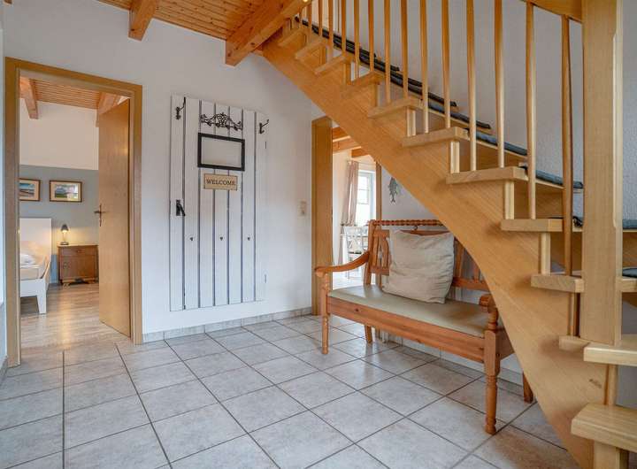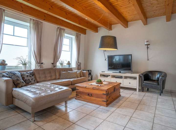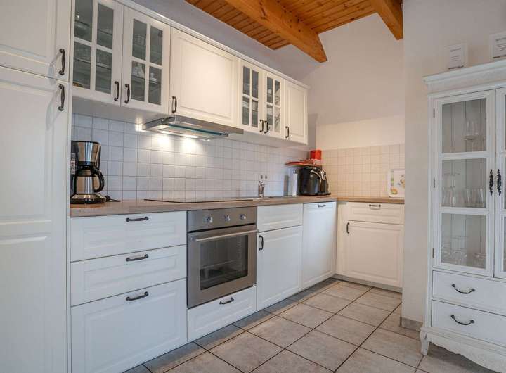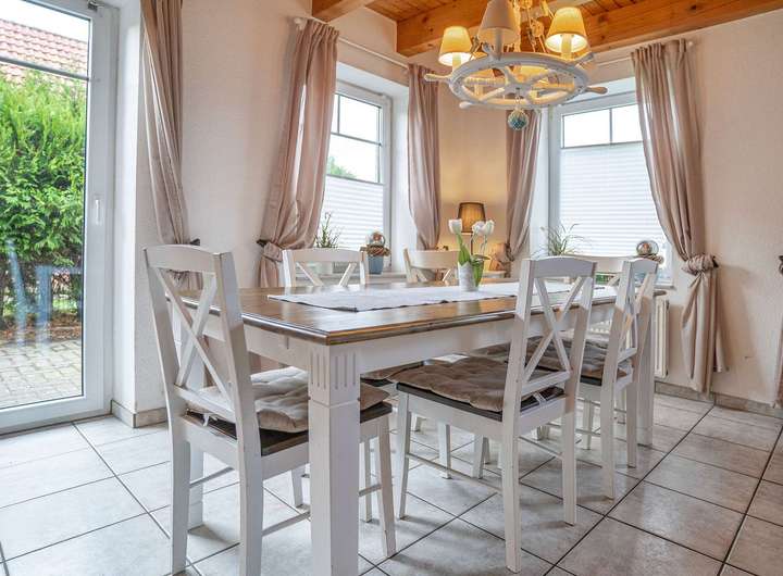 Im Inneren besticht das Haus durch ein modernes und gepflegtes Ambiente, das sofort Urlaubsgefühle aufkommen lässt. Der offene Wohn- und Kochbereich im Erdgeschoss bildet das kommunikative Herzstück: Die geschmackvolle Einbauküche aus 2018 verbindet zeitgemäße Ausstattung mit Landhausstil und fügt sich harmonisch in den lichtdurchfluteten Wohnbereich ein. Ein Abstellraum sowie ein separater Hauswirtschaftsraum bieten zusätzliche Ordnungsmöglichkeiten und erleichtern den Alltagskomfort – besonders praktisch für längere Aufenthalte.