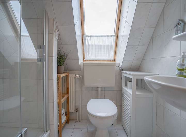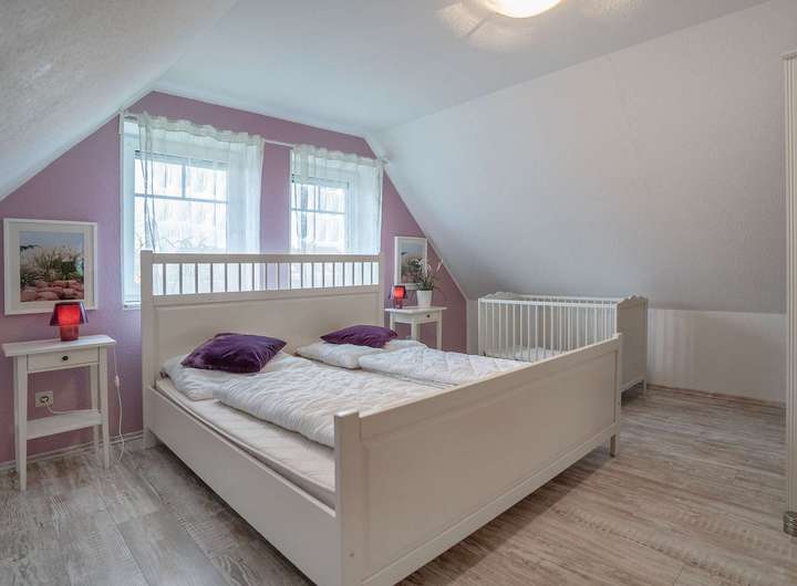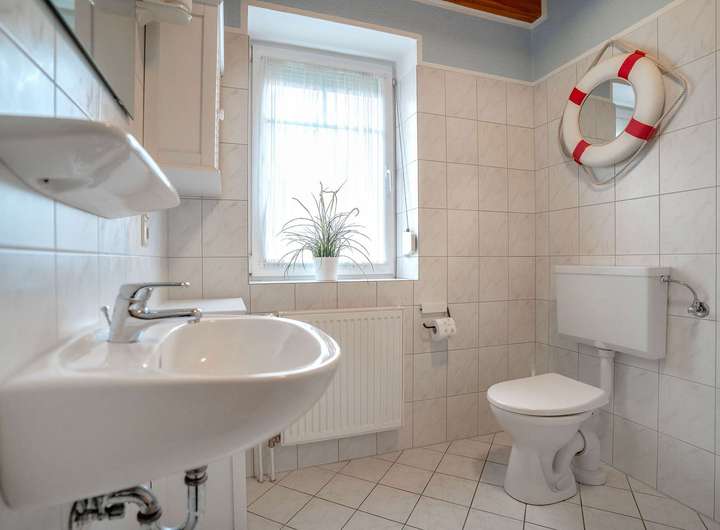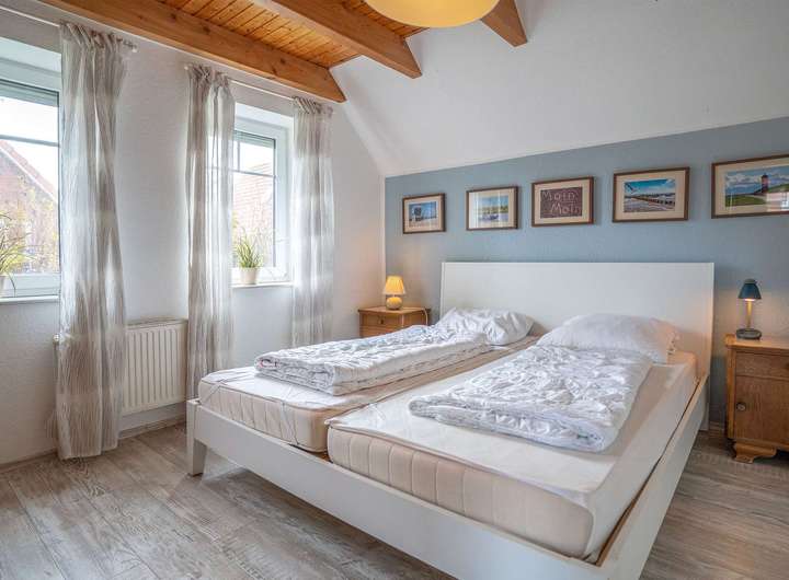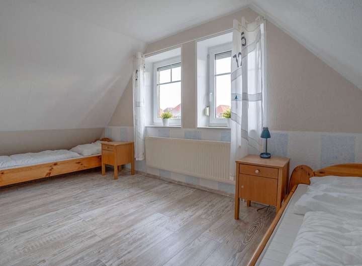 Zwei Tageslichtbäder, jeweils mit Dusche und WC ausgestattet, sorgen auf beiden Ebenen für maximalen Komfort. Das ebenerdige Schlafzimmer schenkt bequeme Zugänglichkeit, während im Obergeschoss zwei weitere Schlaf- bzw. Kinderzimmer für individuelle Rückzugsorte und erholsame Nächte sorgen. Die gesamte Ausstattung ist bereits im Kaufpreis enthalten und macht die sofortige Ferienvermietung besonders unkompliziert.