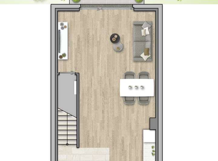 - Außenbereich: Terrasse mit Garten zur individuellen Gestaltung