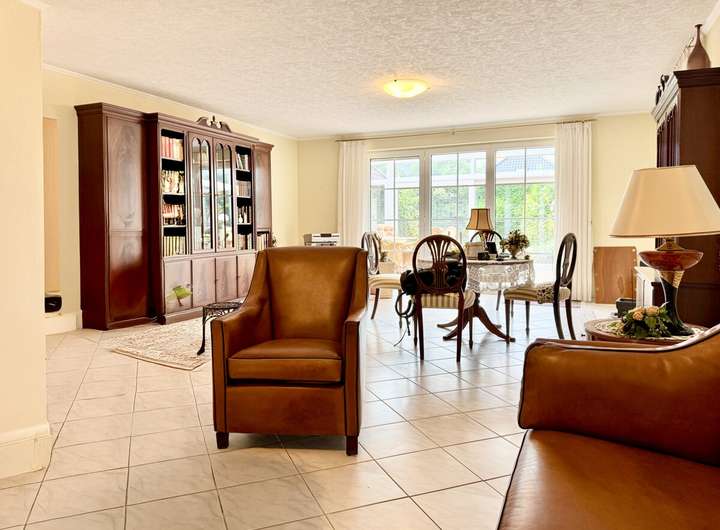 - Wohn- und Esszimmer mit Zugang zum Wintergarten und in den Garten