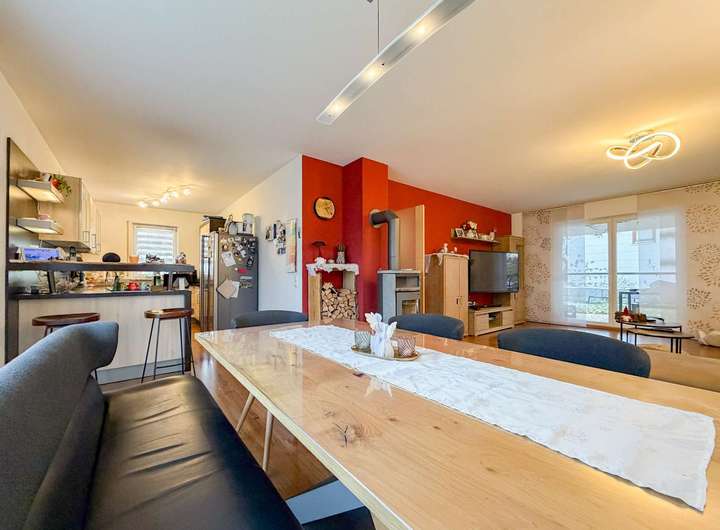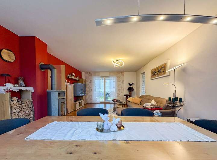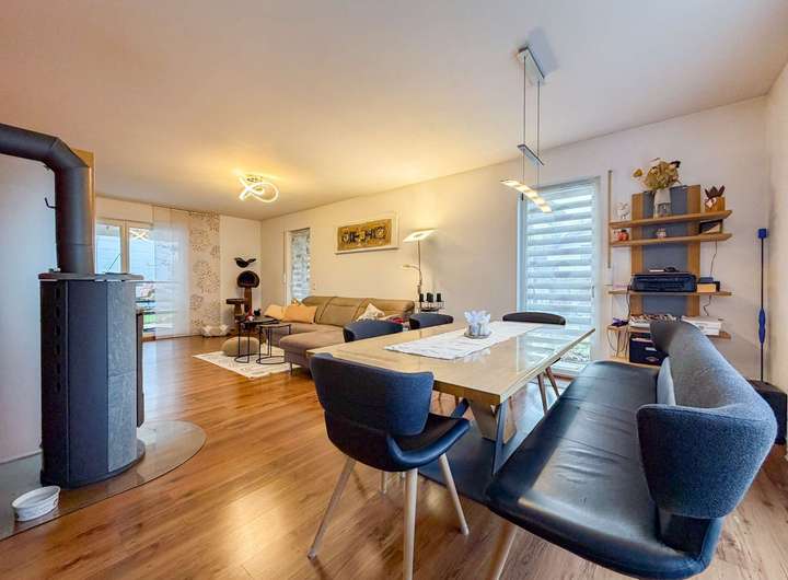 - offener Wohn-, Ess-, Kochbereich mit gemütlichem Kaminofen
