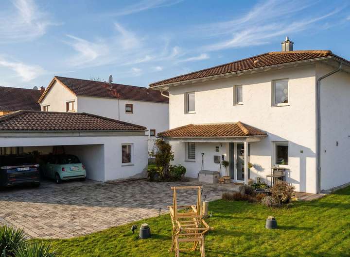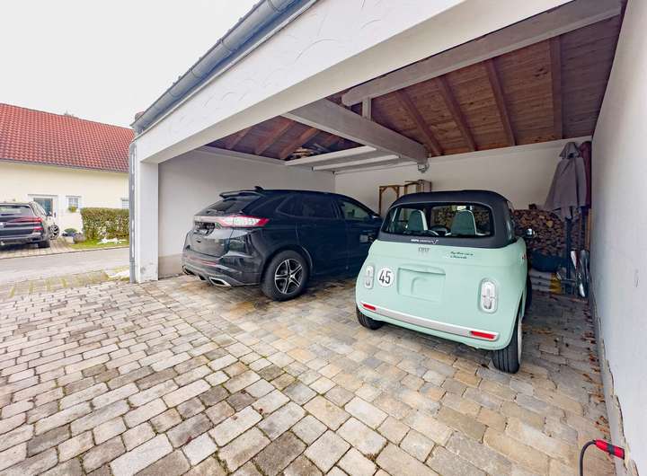 - gemauerter Carport für 2 Autos (optional könnte ein Garagentor ergänzt werden)