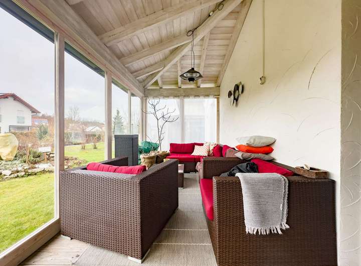 - überdachte Süd-West-Terrasse (zum Teil verglast und windgeschützt)