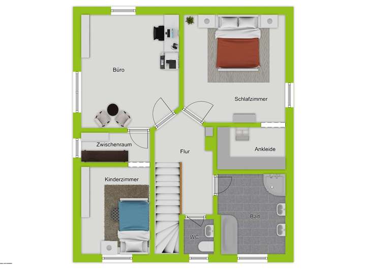 - optional könnten diese Räume als Büro, Ankleidezimmer für Kinder und Kinderzimmer genutzt werden