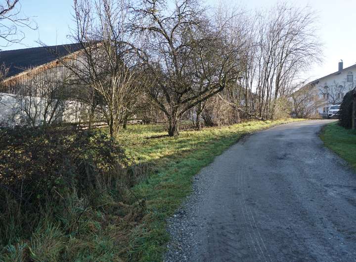Im Ortskern von Schonstett liegt das Grundstück. Nach Westen hin fällt das Grundstück leicht ab. Links und rechts befinden sich zwei aktive Bauernhöfe, wobei in einem auch noch eine Zimmerei mit ansäßig ist. Gegenüber befinden sich Wohnhäuser.