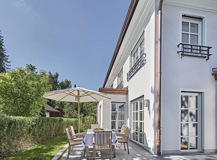 Außergewöhnlich hochwertige und exklusiv ausgestattete Doppelhaushälfte im eleganten und klassischen Villenstil in wunderbarer Süd-West-Ausrichtung.
