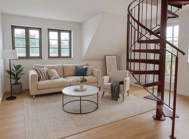Ein architektonisches Detail sorgt für zusätzlichen Komfort: Die Fenster öffnen nach außen – das ermöglicht eine noch bessere Raumausnutzung und verleiht der Wohnung zugleich einen besonderen Charme.