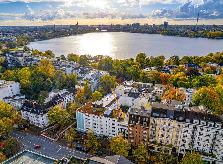 Dieses Ensemble liegt im Herzen von Hamburg-Uhlenhorst – einem der schönsten und begehrtesten Stadtteile der Hansestadt. Hier verschmelzen urbanes Leben, hanseatische Eleganz und naturnahe Erholung auf ganz besondere Weise. Nur wenige Schritte trennen die Straße von der Außenalster, deren Ufer zu Spaziergängen, Radtouren oder sportlichen Aktivitäten am und auf dem Wasser einladen.