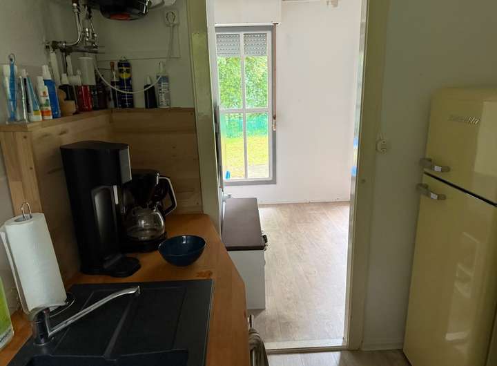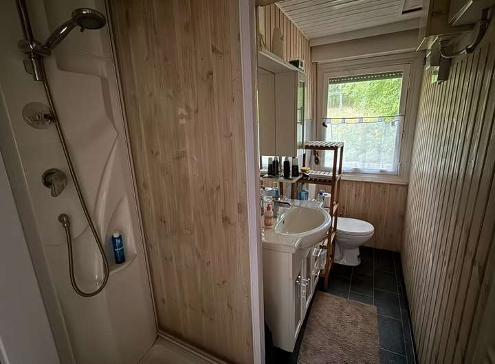 • Bungalow sofort bewohnbar mit WC / Dusche und Warmwasser angeschlossen über eine Grube, die abgeholt wird