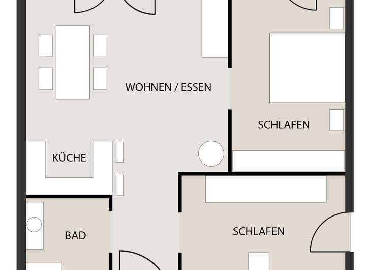 Bei der Grundrissgestaltung wird Effizienz und Großzügigkeit (offener Bereich für Wohnen/Essen/Kochen) vereint. Über einen Außen Aufzug erreicht man bequem die Hausebene. Die Wohnfläche ist ebenfalls vollständig barrierefrei, gerne können im neuen Parkhaus ein oder zwei Parkplätze angemietet werden. Die Häuser werden als Effizienzhaus KFW 40 gebaut und werden von der Deutschen Gesellschaft für nachhaltiges Bauen zertifiziert. Dies wird unter anderem durch eine aufwändige Dämmung der Gebäudehülle erreicht, wie auch durch dreifach wärmeverglaste Fensterfronten mit elektrischen Rollläden. Krönender Abschluss ist das Gründach.