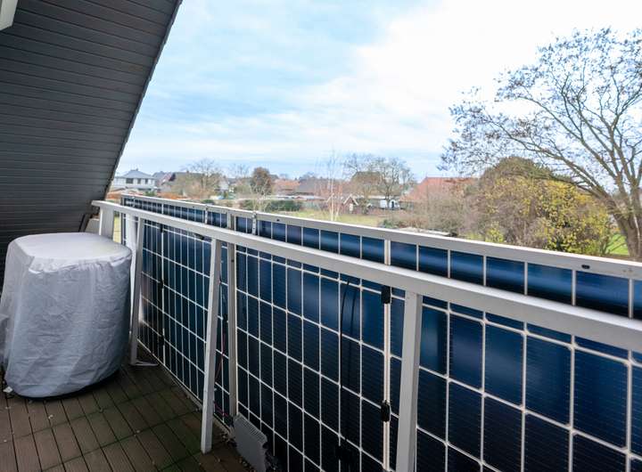 Ein weiteres Highlight sind die zwei bifazialen Solarmodule am Balkon, jeweils mit 450 Watt Leistung inklusive Wechselrichter, die einen modernen Beitrag zur Energieeffizienz der Wohnung leisten.