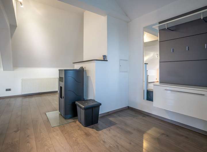 Der offene Wohnbereich ist das Herzstück der Wohnung und bietet viel Platz für Ihre individuellen Gestaltungsideen. Für wohlige Wärme sorgt der Pelletofen der Marke Palazzetti, der die Hauptwärme liefert und daher die Heizungsanlage nur in seltenen Fällen benötigt wird. Ergänzend sorgt eine Split-Klimaanlage im Schlafzimmer für angenehme Temperaturen – sowohl zum Kühlen im Sommer als auch zum Wärmen in der Übergangszeit.
